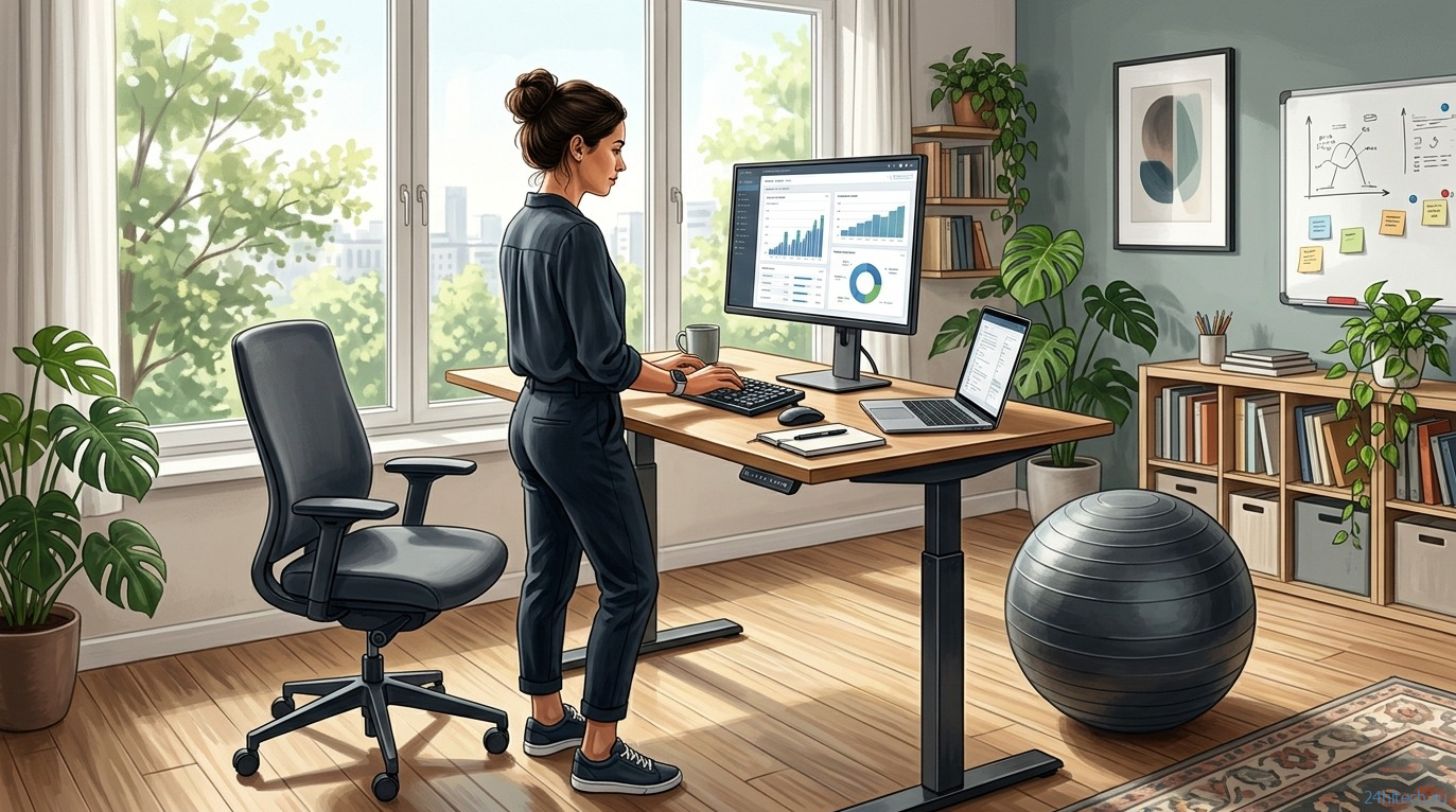 Один из практичных способов чаще менять положение — использовать стол с регулируемой высотой. Чередование 30 минут сидя и 30 минут стоя помогает разгрузить мышцы и не давать телу застывать в одной позе на часы.