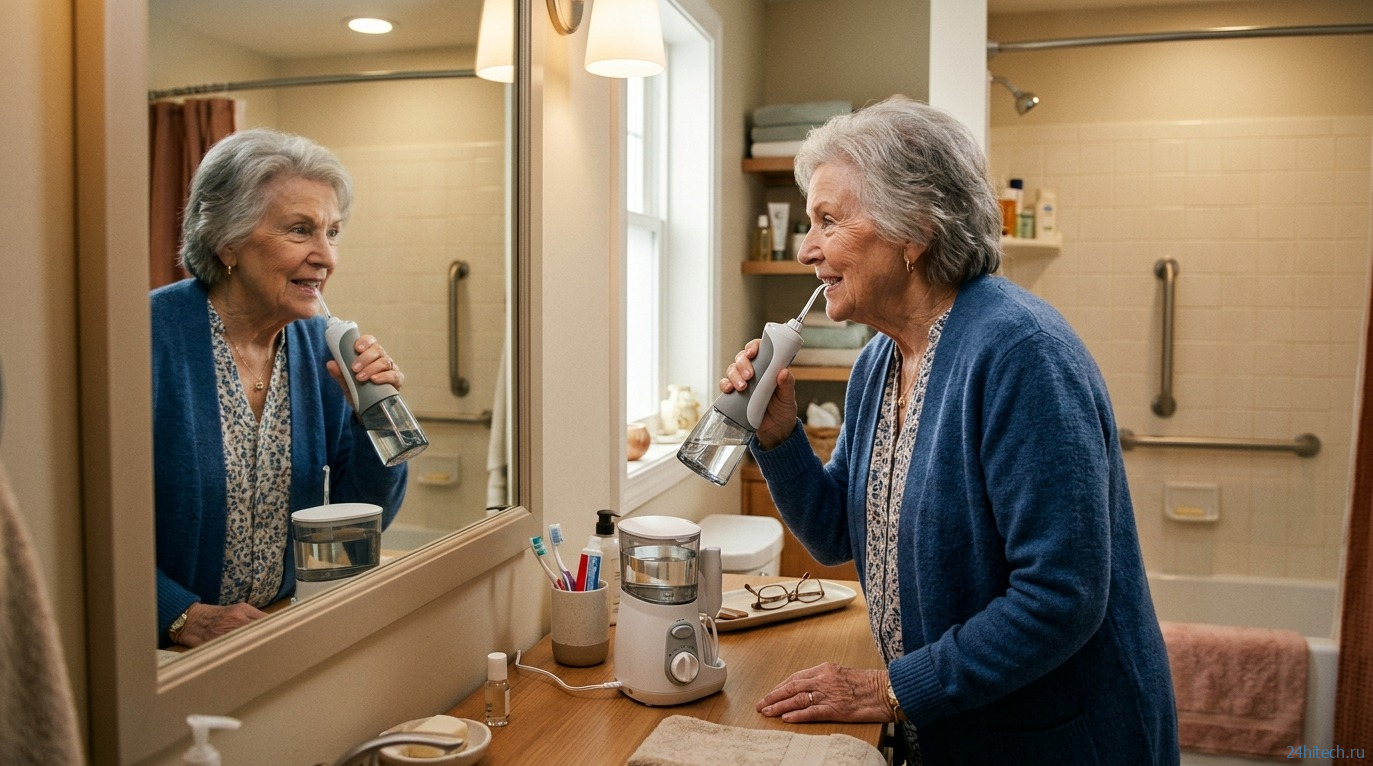 Ирригатор особенно удобен для пожилых людей и тех, кому трудно пользоваться зубной нитью