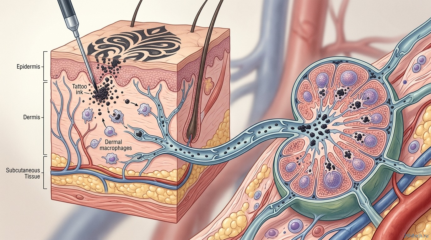 Но чернила не остаются на месте. Исследование показало, что тату-пигмент не только остается в коже, но и перемещается по телу, накапливаясь в лимфатической системе, где может оставаться годами. Лимфоузлы — это «командные центры» иммунитета, они фильтруют и координируют работу иммунных клеток. Когда в них накапливаются посторонние химические вещества, это вызывает обоснованное беспокойство.