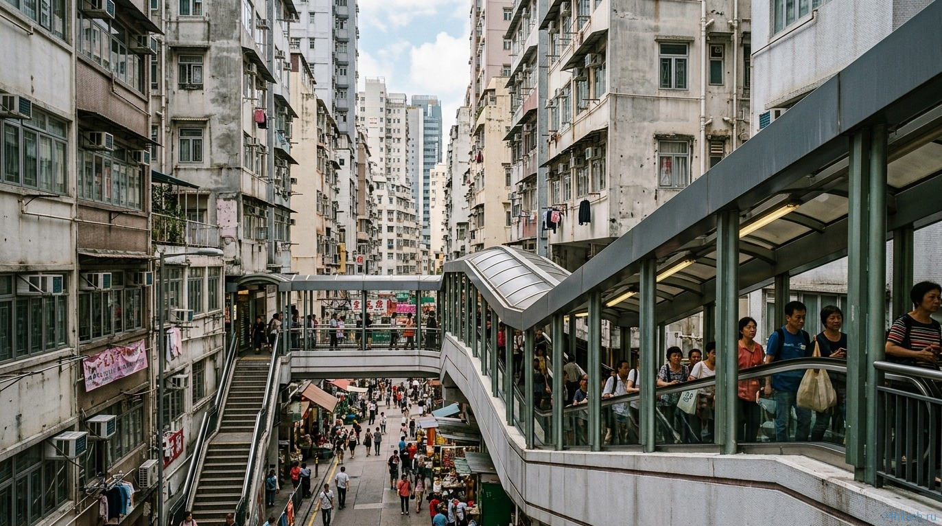 Уже есть работающие примеры. Эскалаторная система Central—Mid-Levels в Гонконге — это 800-метровая крытая цепочка из 16 эскалаторов и трёх траволаторов, связывающая крутые холмы района Mid-Levels с деловым центром. Открытая в 1993 году, она перевозит около 85 000 человек в день — бесплатно. Утром система везёт людей вниз на работу, а после 10 утра разворачивается и везёт обратно в гору до полуночи. По сути, это городской движущийся тротуар, работающий уже больше 30 лет.