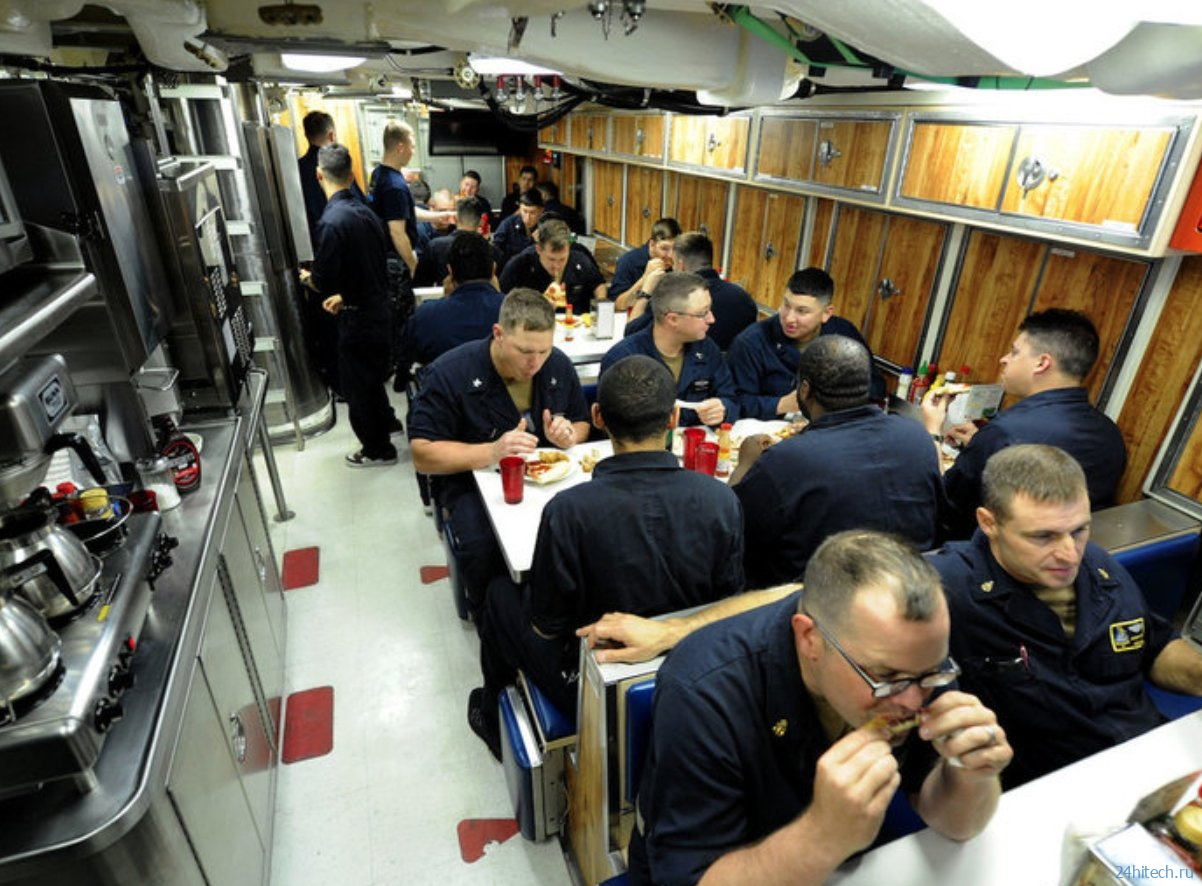 Столовую можно считать единственным просторным местом в подводной лодке. Источник изображения: pikabu.ru