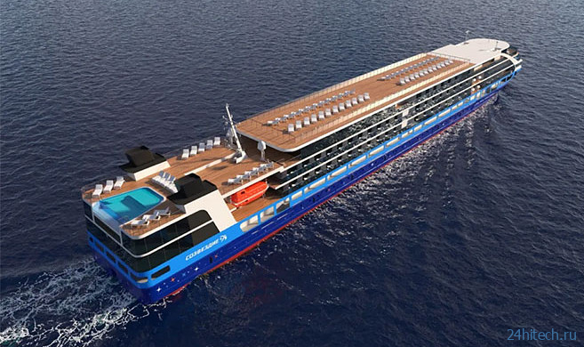 Лайнер сможет брать на борт почти 280 пассажиров, которые комфортно разместятся в 126 каютах разного класса, 80 % из них будут иметь свои лоджии.