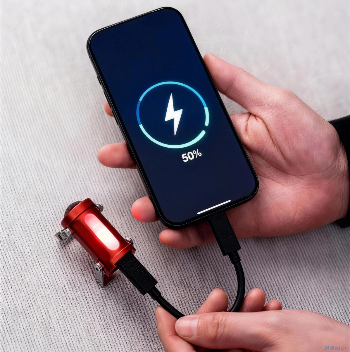 Штатная литиевая АКБ на 3250 мА⋅ч получает зарядку через USB-C. Ее запаса хватает на 180 минут работы в режиме дальнего света или на двадцать часов в режиме вспомогательной подсветки. Более того, этот аккумулятор может выступать в роли внешнего накопителя энергии — например, для подзарядки смартфона.
