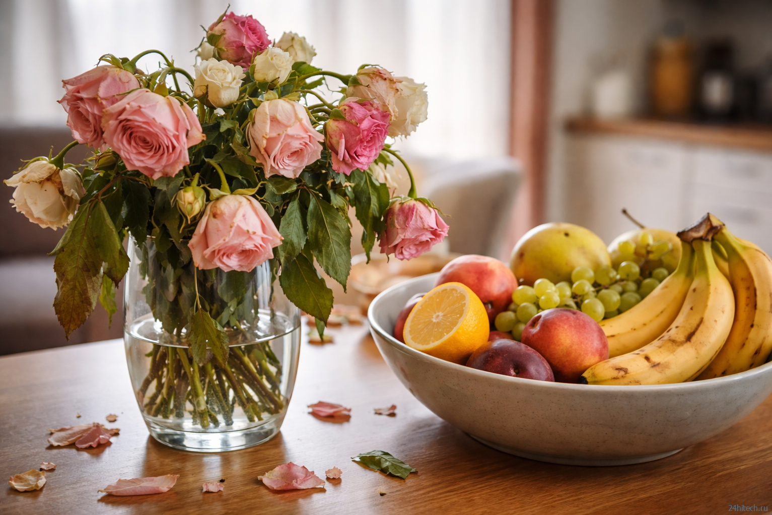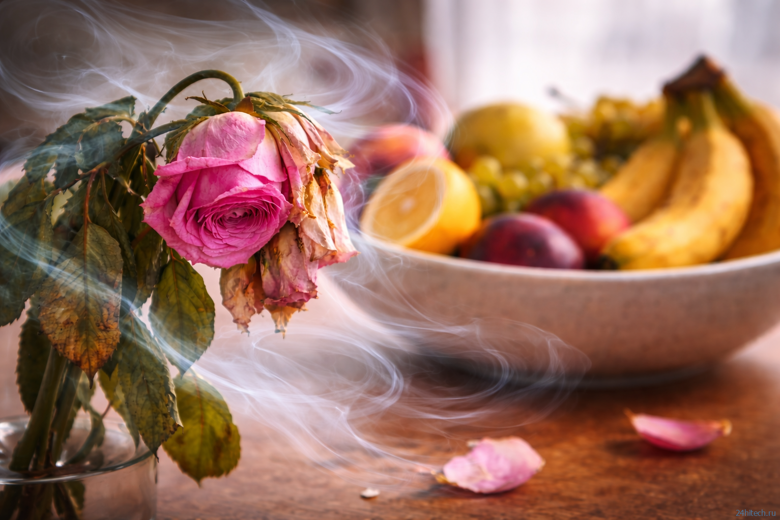 Почему букет быстро вянет рядом с фруктами