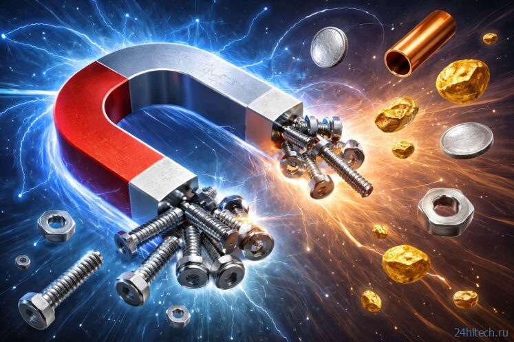 Когда вы подносите магнит к железу, его атомы словно подстраиваются под поле магнита — и возникает притяжение. У большинства других металлов такого механизма просто нет. Поэтому алюминий, медь, золото или серебро остаются равнодушными к магниту.