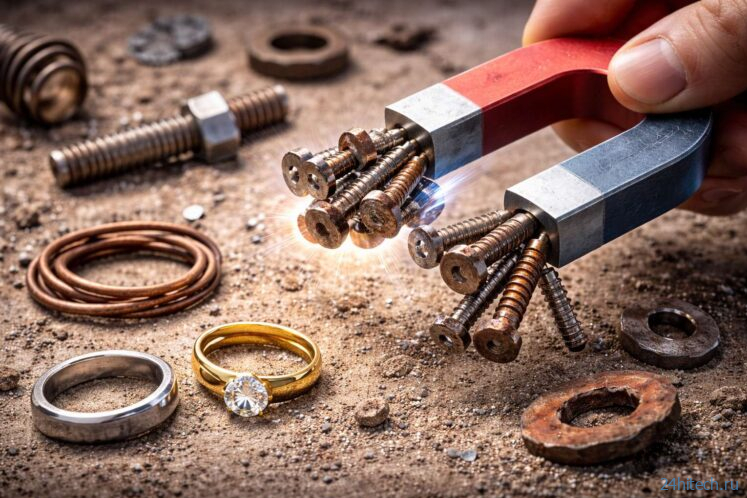 - ювелирные украшения: магнит — простой способ заподозрить подделку без приборов. Если предмет сильно притягивается, это весомый аргумент против “чистого” золота/серебра (они не должны быть заметно магнитными).