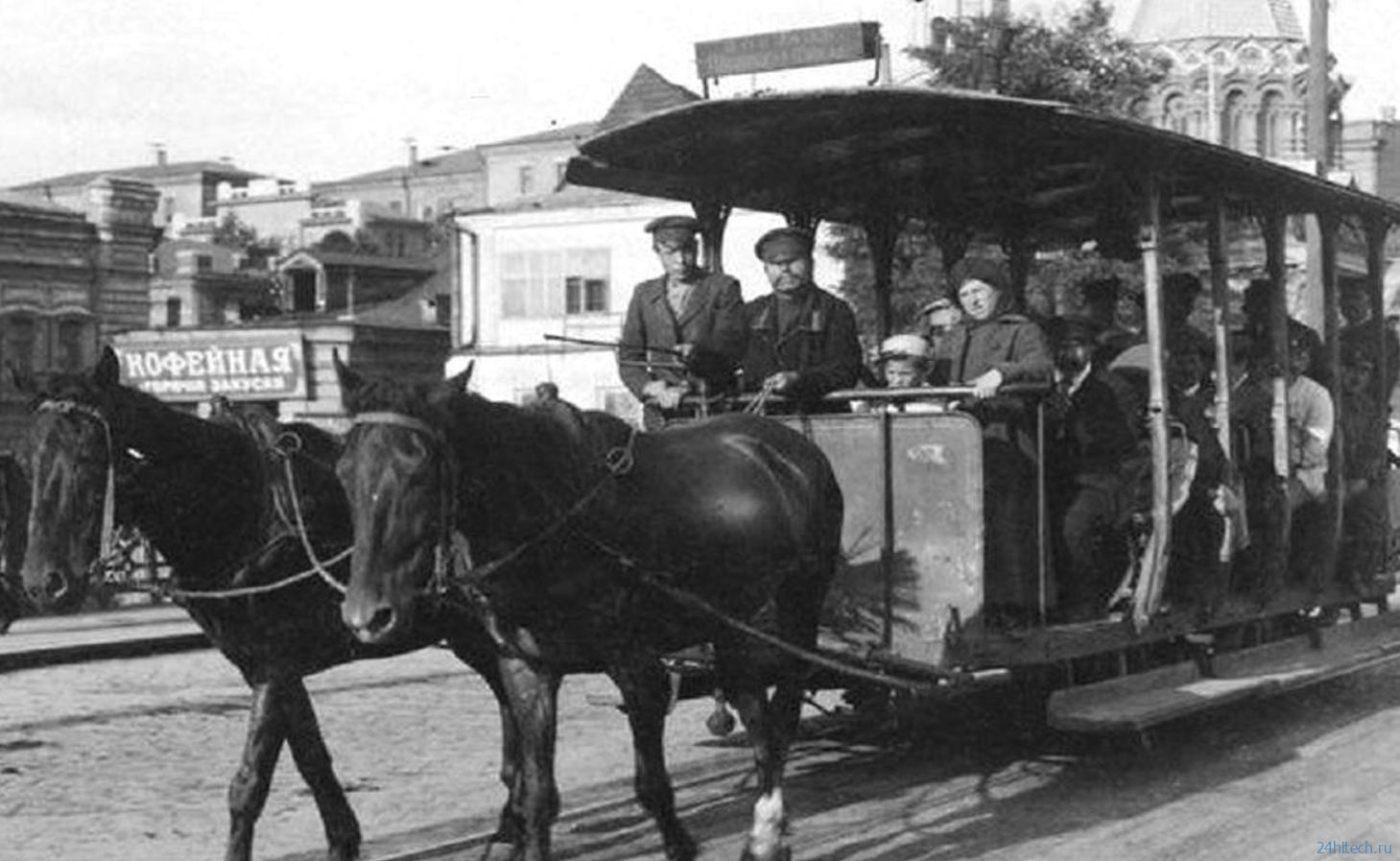 Первые трамваи в России были вовсе не электрическими, а конными — их называли конками.