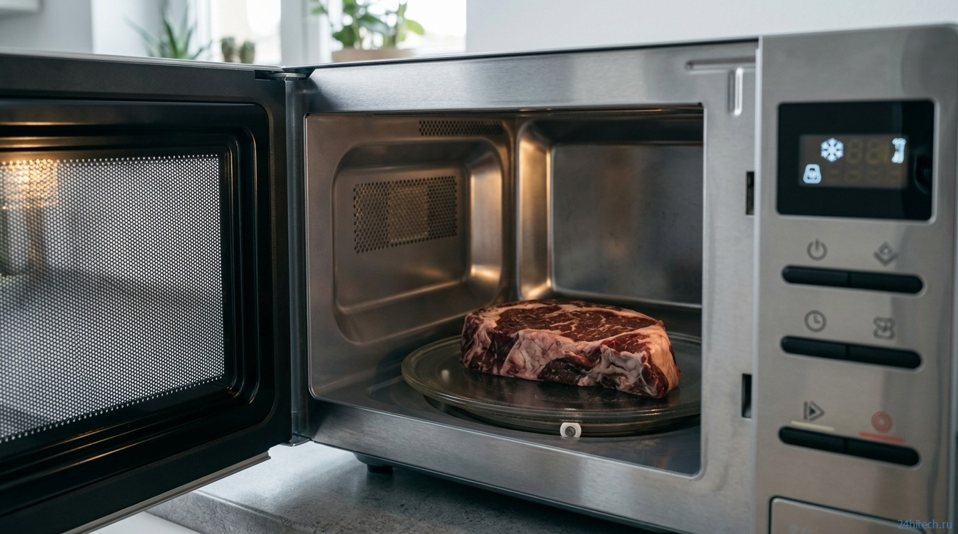 Дело в том, что микроволны прогревают продукт неравномерно. Тонкие края могут начать подвариваться, пока толстая середина еще ледяная. Те участки, которые уже нагрелись, снова попадают в опасную температурную зону. Если после микроволновки оставить мясо «отдохнуть» на столе — бактерии получат фору.