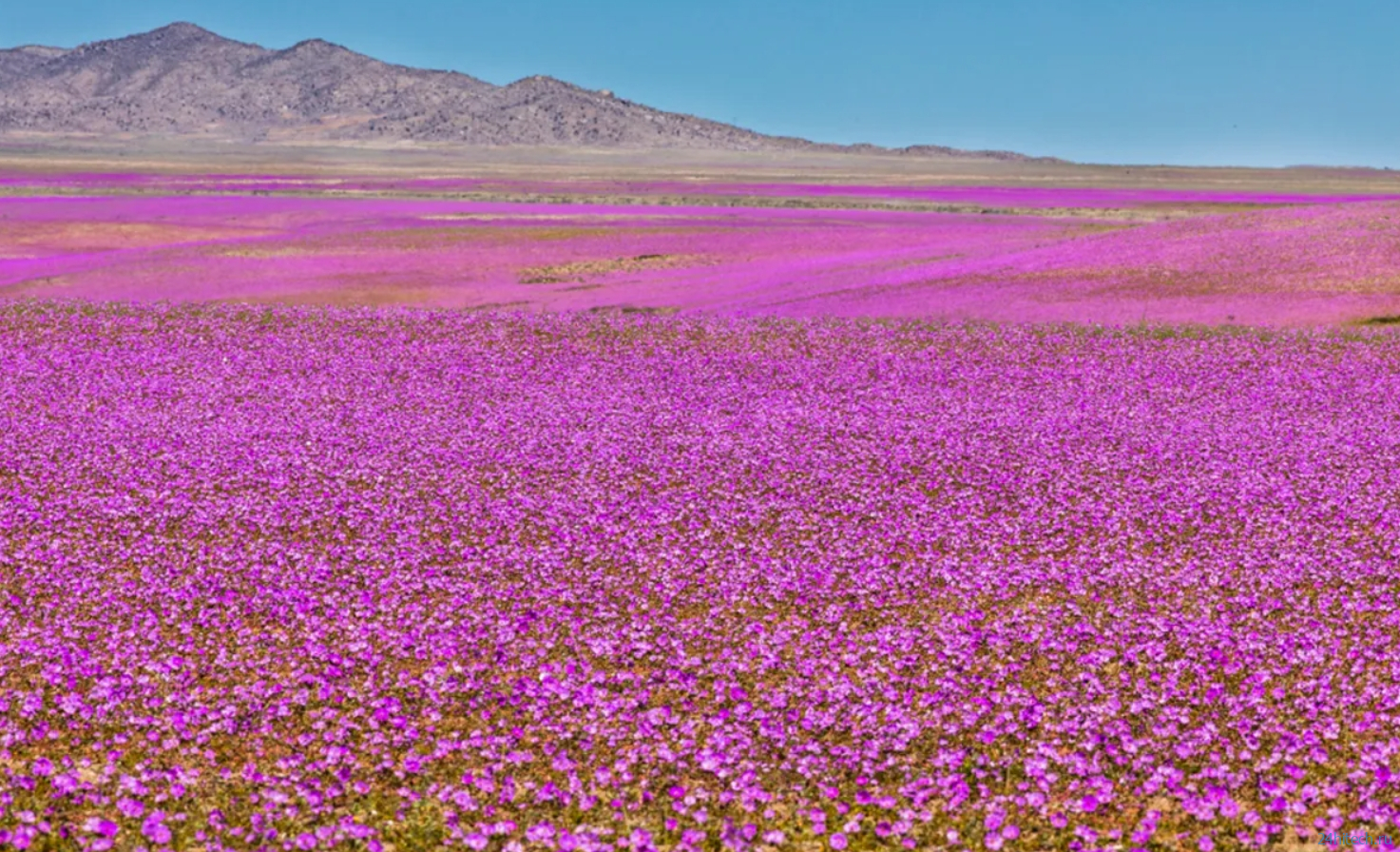 В этом году пустыня Атакама в Чили, известная как одно из самых сухих мест на Земле, удивила всех. После редких дождей ее привычно бесплодные просторы покрылись ярким ковром фиолетовых цветов.