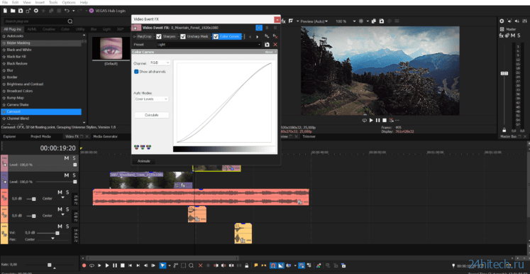 Интерфейс построен вокруг привычного таймлайна, панели эффектов и окна предпросмотра, что делает процесс работы логичным и последовательным. Однако порог входа выше среднего: чтобы освоить все возможности VEGAS Pro, потребуются время и практика.