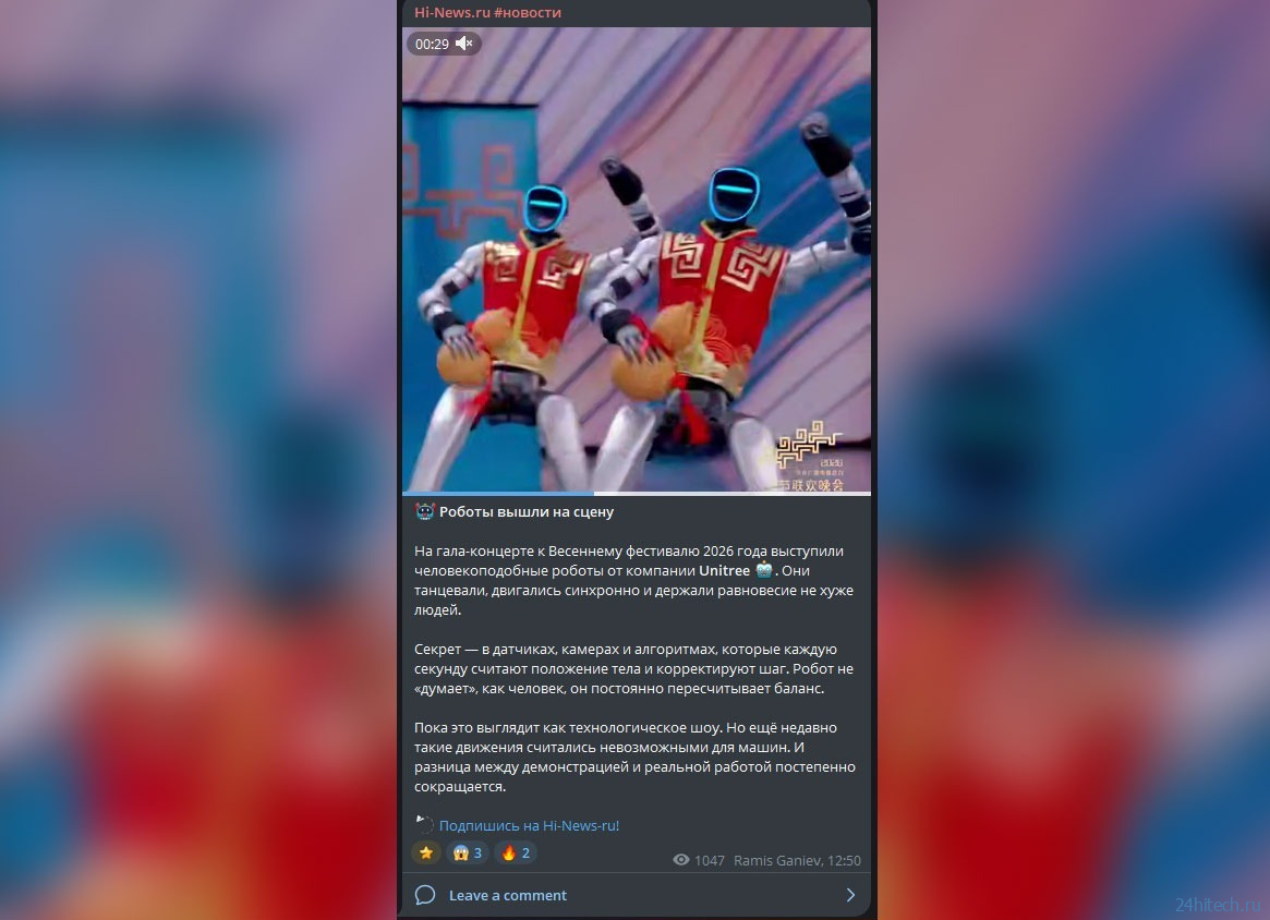 В феврале 2026 года китайские роботы произвели настоящий фурор на Гала-концерте Праздника весны — крупнейшем телевизионном шоу страны. Роботы от четырех компаний, включая Unitree Robotics, выполняли сальто, приемы кунг-фу и синхронные боевые последовательности, которые мгновенно разлетелись по соцсетям. Если годом ранее андроиды на том же шоу неуверенно вращали платочки, то теперь они буквально летали по сцене.