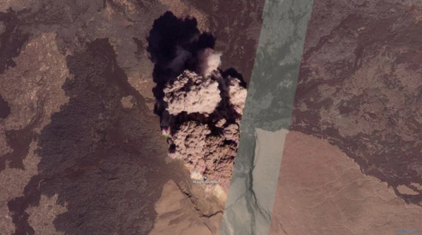 Извержение вулкана в Эфиопии со спутника. Источник изображения: rbc.ru
