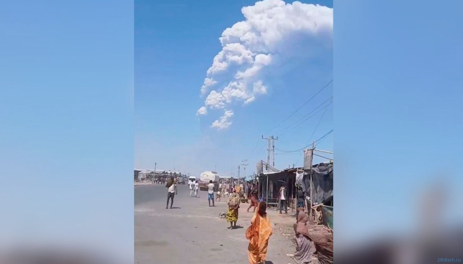 Стоб пепла, поднявшийся после извержения вулкана Хайли-Губби. Источник изображения: rutube.ru